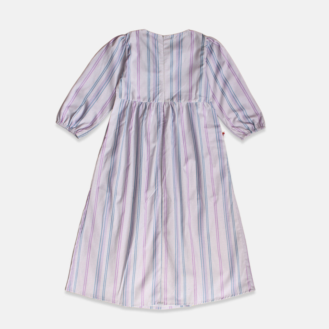 ✨ Dress panjang motif salur warna Ungu, Original di desain oleh tim Rodeo Junior