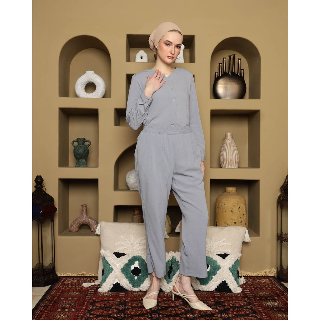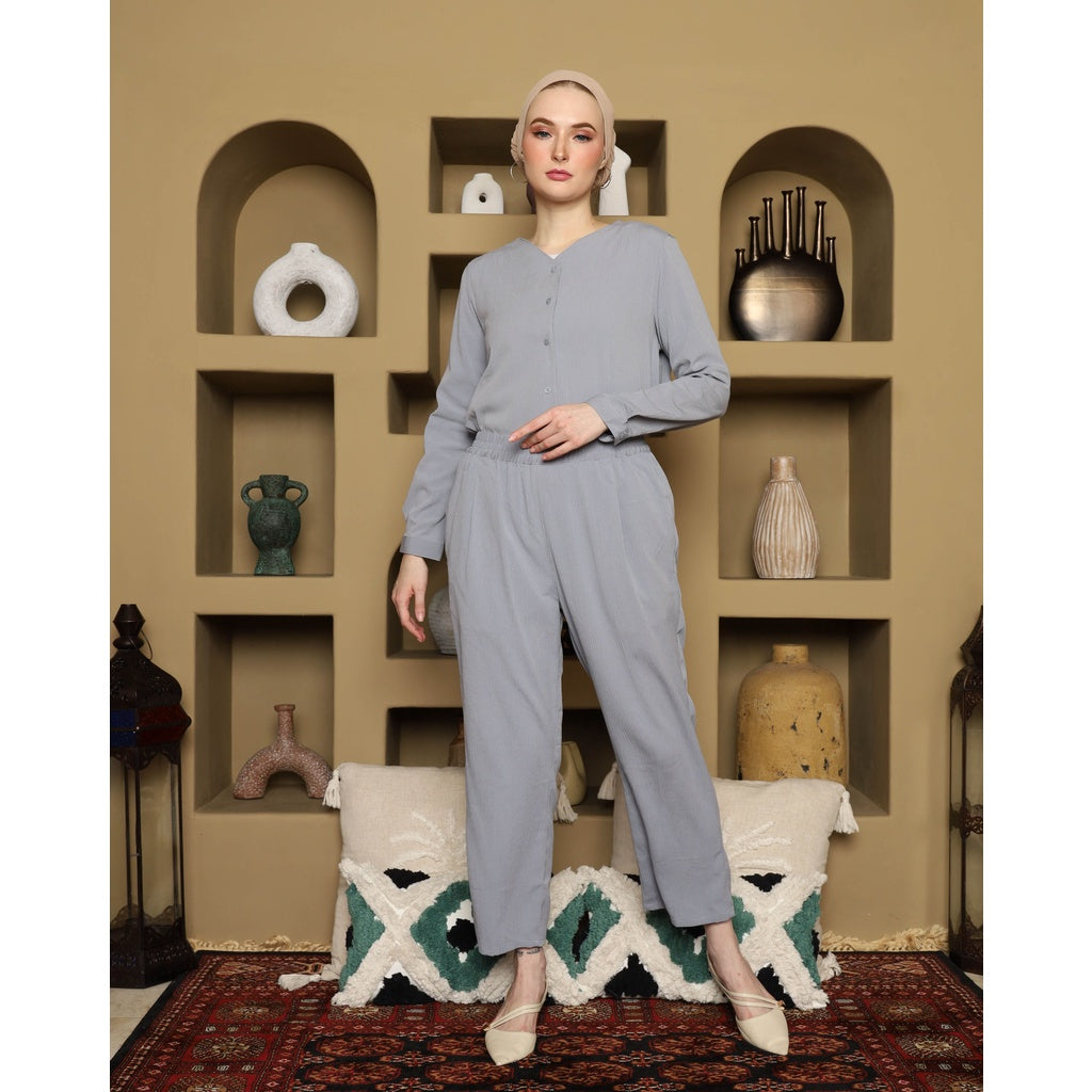 Lebar pinggang (cm) x Lebar Pinggul (cm) x Panjang Celana (cm)